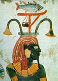 Isis was the very important Goddess of Love in the lives of Ancient Egyptians. She was married to Osiris and the mother of Horus. The tale of their love can be found by clicking on the picture of Isis above. She is one of the four protector Goddesses and she guards coffins and canopic jars. Click on this link to view more information about Isis.